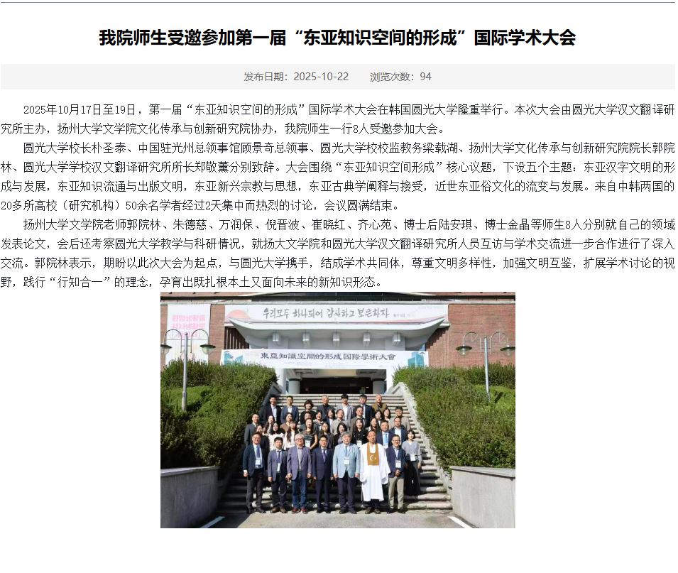 보도자료 홈보도자료 우리 교수진과 학생들은 “동아시아 지식 공간의 형성”을 주제로 한 제1회 국제 학술대회에 초대되었습니다. 우리 교수진과 학생들은 “동아시아 지식 공간의 형성”을 주제로 한 제1회 국제 학술대회에 초대되었습니다. 한문번역연구소2025-10-28 페이스북 트위터 구글플러스 이메일 프린트 이전보도자료다음